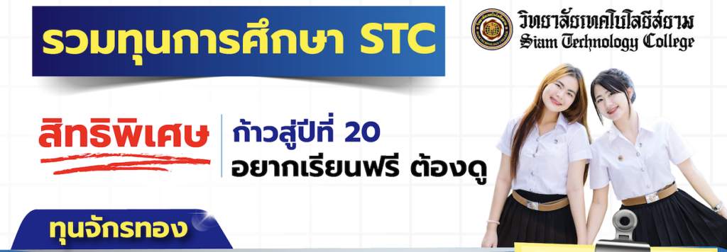 🎓 ทุนการศึกษา 2569 สมัครเรียนวิทยาลัยเทคโนโลยีสยาม รับทุนสูงสุด 100%วิทยาลัยเทคโนโลยีสยาม (STC) เปิดรับสมัครนักศึกษาใหม่ พร้อมมอบ ทุนการศึกษา 2569 สำหรับน้องๆ ที่ต้องกา…