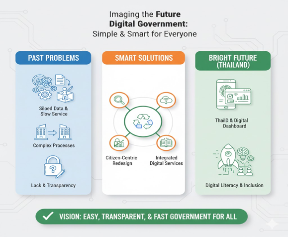 ความคิดเห็นของผู้เขียน จุดเปลี่ยน Digital Government ไม่ใช่แค่การมีเว็บไซต์ แต่คือการเปลี่ยน DNA ของรัฐ ในมุมมองเชิงวิชาการ การสร้างรัฐบาลดิจิทัลในไทยมิใช่เพียงความท้าทายทางเทคโนโลยี แต่เป็นความท้าทายทางวัฒนธรรมองค์การและอำนาจ การที่ข้อมูลถูกจัดการแบบแยกส่วน (Silos) แท้จริงแล้วสะท้อนถึงการยึดติดกับเขตอำนาจหน้าที่ตามกฎหมายดั้งเดิม การสังเคราะห์ที่เฉียบแหลมในประเด็นนี้คือ รัฐต้องเปลี่ยนสถานะจาก “ผู้กำกับดูแล” (Regulator) มาเป็น “ผู้สนับสนุนระบบนิเวศ” (Ecosystem Facilitator) หากพิจารณากรณีศึกษาของเอสโตเนียหรือสิงคโปร์ หัวใจสำคัญคือ “ความเชื่อมั่น” (Trust) หากรัฐสามารถสร้างระบบที่มั่นคงปลอดภัยและโปร่งใส ประชาชนจะยอมรับการใช้ข้อมูลส่วนบุคคลเพื่อแลกกับบริการที่ทรงประสิทธิภาพ สิ่งที่ไทยต้องเร่งทำคือการทำลายกำแพงกฎหมายที่ล้าสมัยและสร้างมาตรฐานการเชื่อมโยงข้อมูล (Data Interoperability) ให้เกิดการไหลเวียนของข้อมูลที่เป็นเสมือน “เลือด” เลี้ยงเศรษฐกิจยุคใหม่ ดังนั้น การ “เร่งสร้าง Digital Government” คือ ทางออกเดียวที่จะนำพาระบบราชการไทยออกจากหล่มความล่าช้าและการทำงานแบบแยกส่วน การดำเนินการต้องอาศัยทั้งนโยบาย การนำเทคโนโลยี AI มาช่วยในการวิเคราะห์งบประมาณและตรวจสอบทุจริต และที่สำคัญที่สุดคือ “การยึดประชาชนเป็นศูนย์กลางอย่างแท้จริง” หากจุดเปลี่ยนนี้สำเร็จ ประเทศไทยจะไม่ได้เพียงแค่รัฐบาลที่ทันสมัยขึ้น แต่จะได้รับความไว้วางใจจากประชาชนกลับคืนมาซึ่งเป็นฐานรากที่มั่นคงที่สุดของการพัฒนาประเทศ