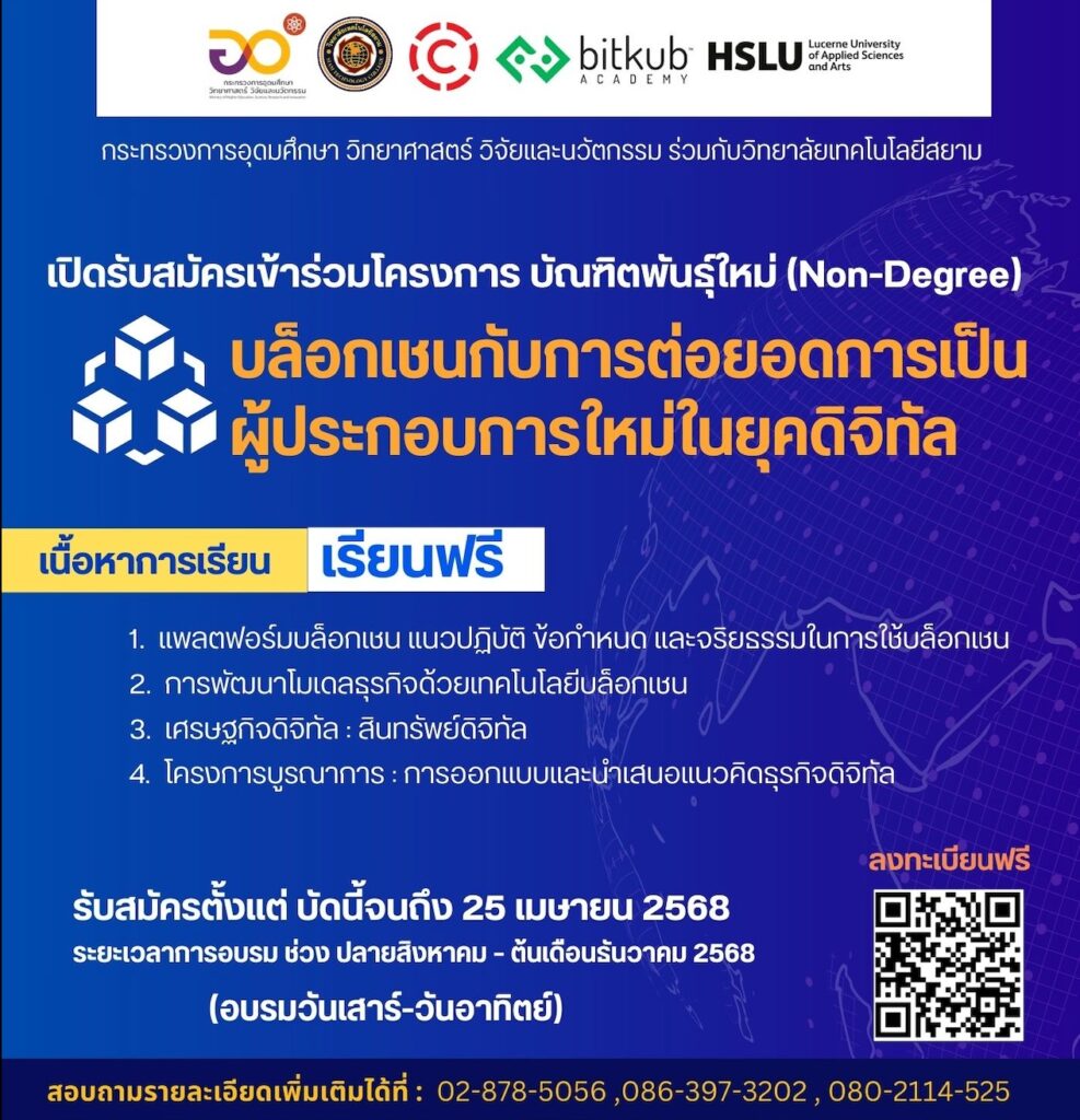 เปิดรับสมัคร โครงการบัณฑิตพันธุ์ใหม่ (Non-Degree) บล็อกเชนกับการต่อยอดการเป็นผู้ประกอบการใหม่ในยุคดิจิทัล เรียนฟรี !