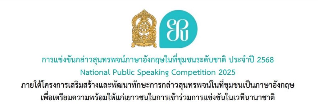 ประชาสัมพันธ์โครงการเสริมสร้างและพัฒนาทักษะการกล่าวสุนทรพจน์ในที่ชุมชนเป็นภาษาอังกฤษ เพื่อเตรียมความพร้อมให้แก่เยาวชนในการเข้าร่วมการแข่งขันในเวที่นานาชาติ ประจำปี 2568