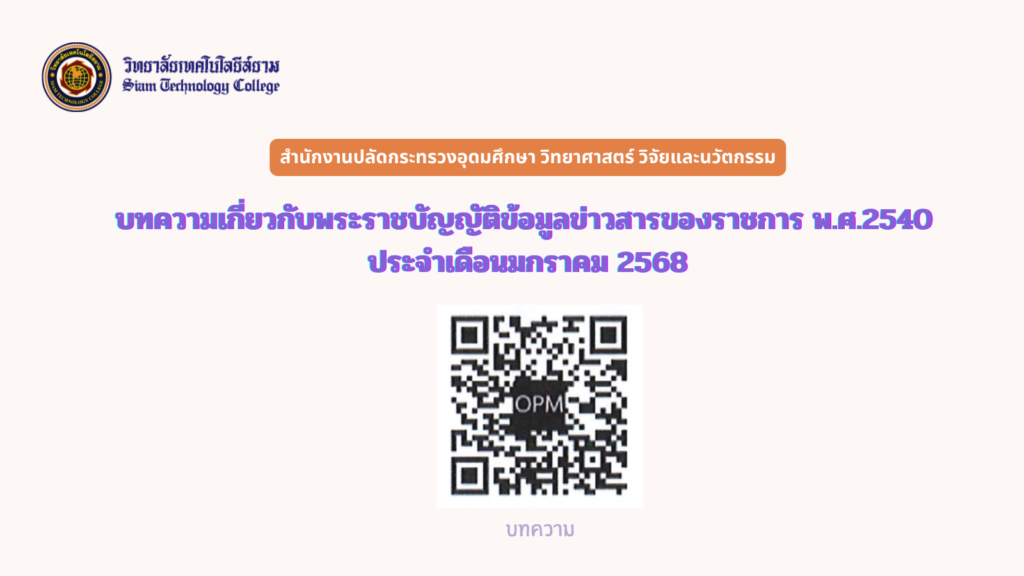 เผยแพร่ความรู้เกี่ยวกับพระราชบัญญัติข้อมูลข่าวสารของราชการ พ.ศ. 2540 จำนวน 5 เรื่อง