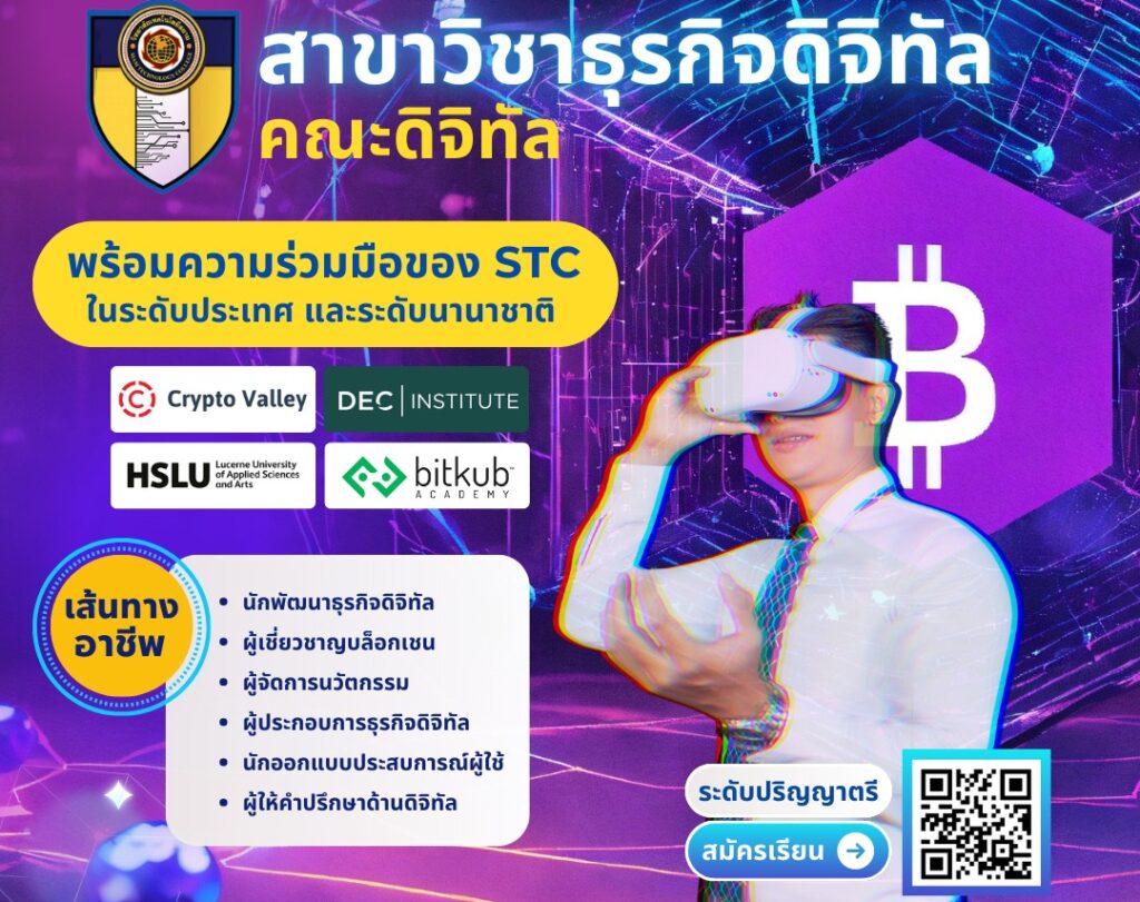 เพิ่มเติมความรู้เทคโนโลยีดิจิทัล ทักษะการปฏิบัติ และศาสตร์ที่เกี่ยวกับข้องกับการพัฒนาธุรกิจดิจิทัลอย่างยั่งยืน สู่อาชีพค่าตัวสูง อาทิ นักพัฒนาธุรกิจดิจิทัล นักวิเคราะห์ความต้องการทางธุรกิจดิจิทัล ผู้ประกอบการธุรกิจดิจิทัล นักวิเคราะห์สินทรัพย์ดิจิทัล หรือ นักปฏิบัติงานคอมพิวเตอร์