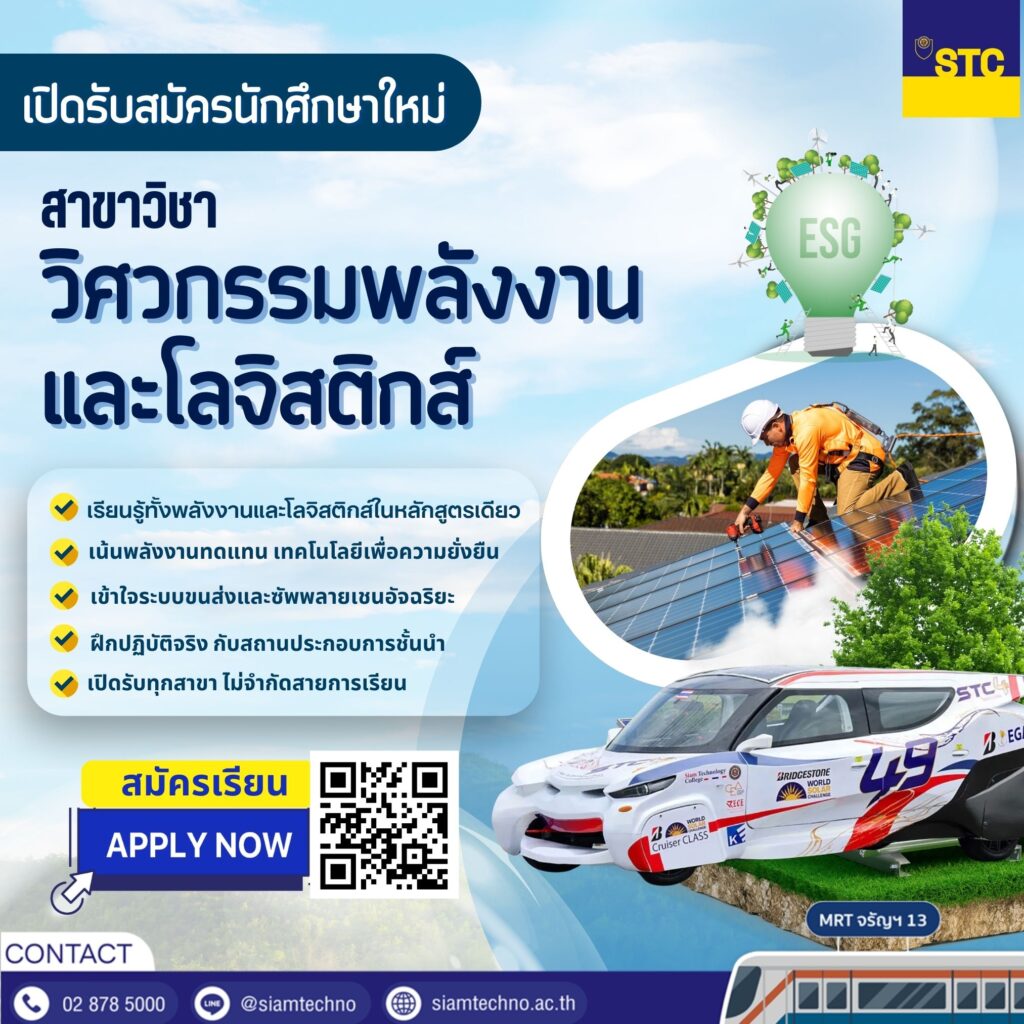 เรียน วิศวกรรมพลังงานและโลจิสติกส์ กับวิทยาลัยเทคโนโลยีสยาม