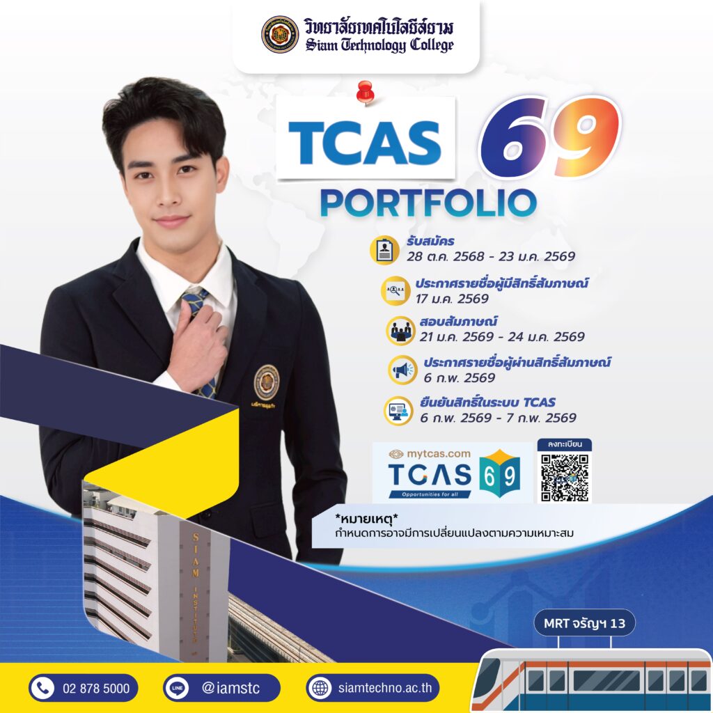 #STC69 #TCAS69 #SiamTechnologyCollege #สมัครเรียนSTC #Portfolio #วิทยาลัยเทคโนโลยีสยาม #IamSTC
